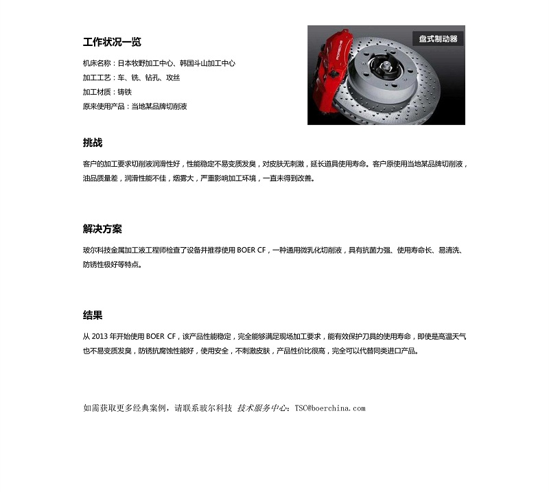 文本标签:盘式制动器 玻尔科技 切削液 乳化切削液 微乳化切削液