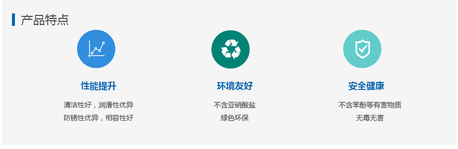 描述:防锈性优异,延长模具使用寿命;清洗性好,洁净性高,提高工件表面光洁度;润滑性好,冷却性好,提高加工效率。